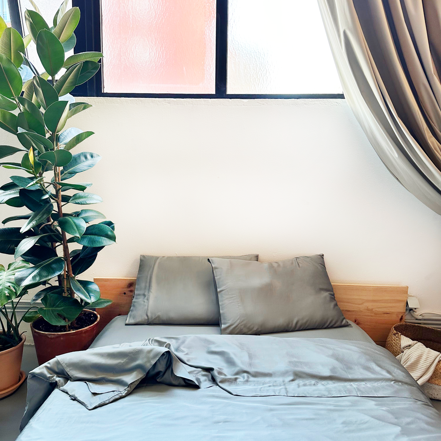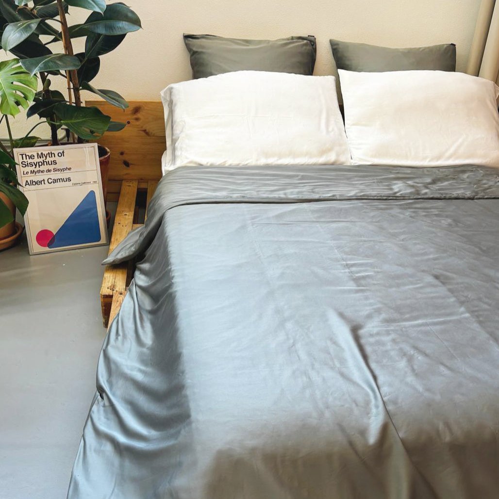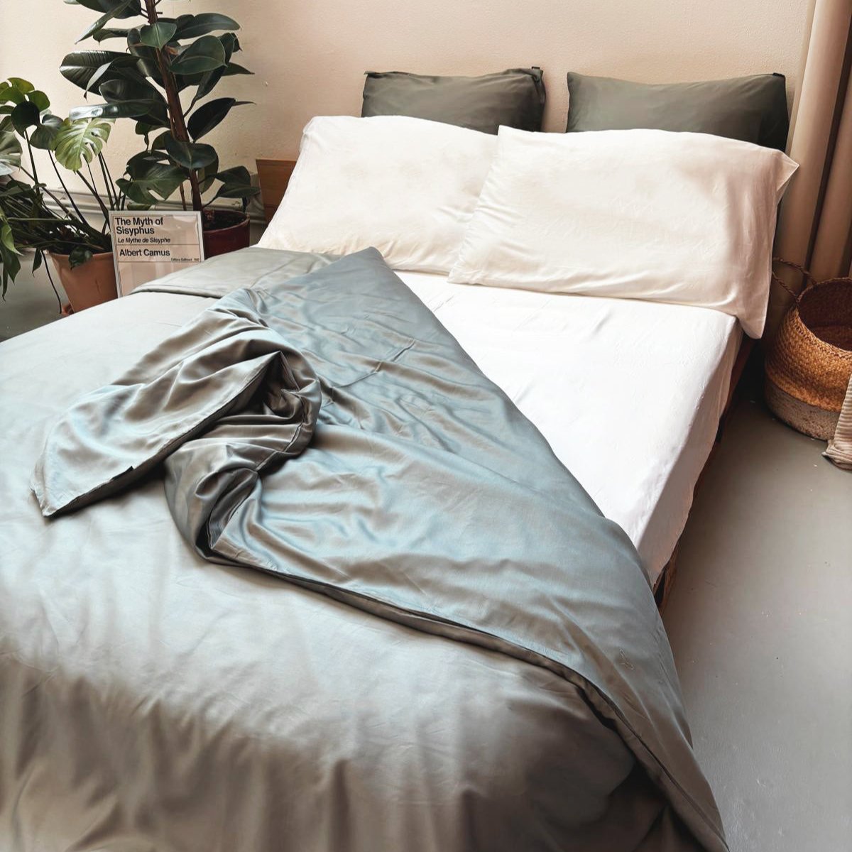 Momo sheets are 300 thread count, the equivalent of 1200 in cotton.
