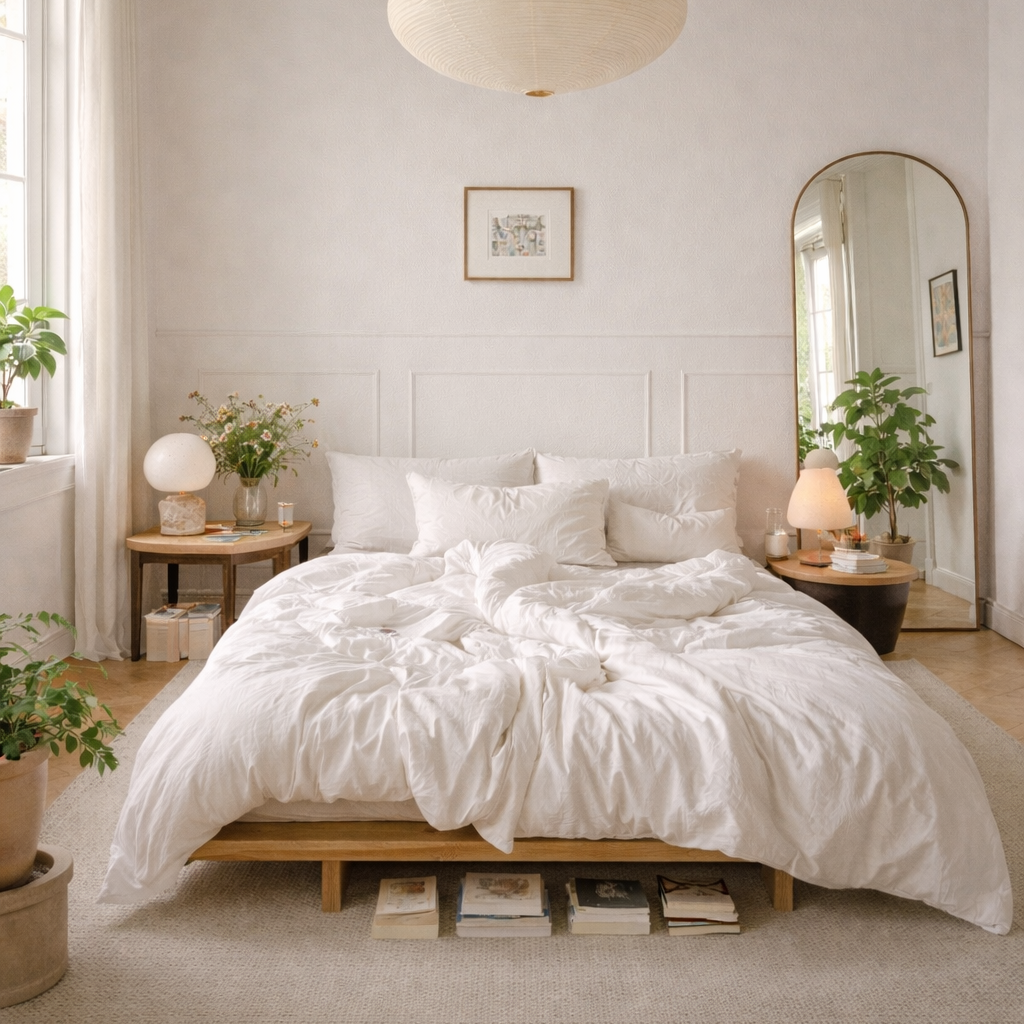 Made from 100% natural bamboo with a 300-thread count, it offers an ultra-soft and silky touch with the lightness and comfort that define Momo Cotton. The fabric is naturally breathable and thermoregulating, helping to maintain the ideal temperature throughout the night. Hypoallergenic and antibacterial, it’s safe for sensitive skin and perfect for everyday use.